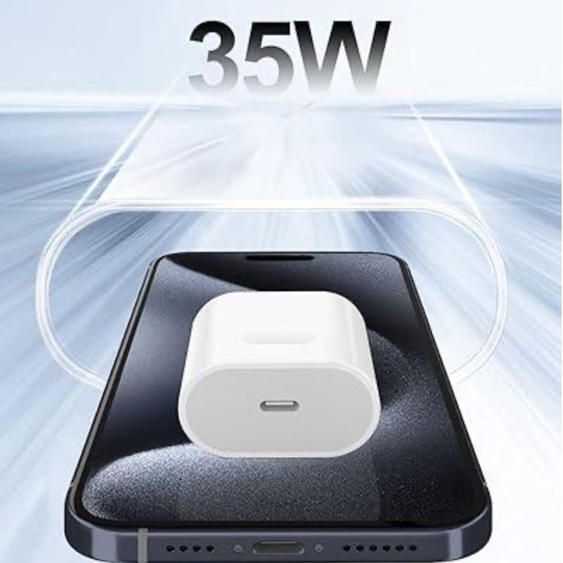Cargador rápido de 35W USB-C y cable de 1 metro Cable USB-C a C, ofrece una carga rápida, segura y eficiente para tus dispositivos.
